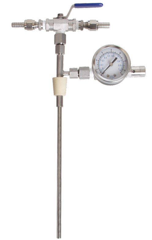 Beer barb is 1/4". Gas barb is 5/16".,,We think our Counter Pressure Filler is the best on the market and the Deluxe Counter Pressure Filler takes a proven design to the next level by adding a pressure gauge for monitoring bottle pressure and flared connections for easy cleaning.,,The gauge allows you to know the pressure in your bottle, an incredibly handy feature. The flared connections allow for easy cleaning as you can connect on or disconnect your lines in a matter of seconds. Traditionally these lines can be difficult to sanitize because they were permanently connected with hose clamps.,,Still has all the great feature of our original,All Stainless Construction (except for a brass backing on the pressure gauge),A true Counter Pressure Filler (for less foaming),Easy to use Stainless 3-way ball valve on top,Adjustable Stainless pressure release on side,Flushes bottle from the bottom not the top,,,What is a Counter Pressure Filler? If you currently carbonate and store your homebrew in kegs, you can use a counter pressure filler to bottle beer directly from your kegs. One huge advantage of this method is that since you are bottling already carbonated, clear beer, there will be no sediment at the bottom of your bottles.,,Counter pressure filling is how a brewery bottles beer. The bottle is under pressure while the carbonated beer flows in. Because the interior of the bottle is pressurized there is minimal loss of the CO2 in solution. The opposite of filling under pressure is when you pour a beer into a pint glass where CO2 erupts out of solution creating all that foam. Great in your glass but not good when you are trying to bottle carbonated beer. Our counter pressure filler mimics a single filling head on a professional bottling line, a concept that we all know works very, very well.,,A Short Video on the Original KEG801 Counter Pressure Filler,,Find more videos like this on morebeer,,,Features While some models flush the bottle from the top and fill from the bottom, our unit features a special valve that allows CO2 and beer to flow down the same stainless tube, directly to the bottom of the bottle. First CO2 flows down into the bottom of the bottle to flush from the bottom up. Next you switch the valve position and beer flows down the same tube, filling from the bottom up. The result is a more effective purging of oxygen and no foam during the filling process - not to mention that the whole thing takes one-hand to operate! Why hope that you flushed your bottle properly using a type of beer gun, when you can know for sure that you have created the best environment for your beer to be stored at by using a Counter Pressure Bottle Filler?,,More Details,The unit is inserted into the bottle in the off position. The valve is then turned to CO2 to flush the bottle and then to beer for filling. The adjustable pressure relief on the side of the unit allows you control the speed of fill by adjusting the pressure in the bottle. The valve is positioned in such a way that it is easy to use with one hand, while the other holds the bottle. This model is designed for 12oz bottles but can easily be extended to accommodate larger bottles, such as 22oz, with a small piece of 1/4" tubing.,,Setting Your PSI Pressure,,Before you counter pressure fill a bottle make sure you are satisfied with the carbonation level and flavor. The goal for counter pressure bottle filling is to store your beer in the most sanitary and clean environment possible so when you get ready to share your homebrew its presentation is perfect when you go to pour.,,An ideal set point to set your PSI level on your regulator is 10-14 psi. This range is dependent upon the temperature of your beer and the carbonation level. We recommend you start at a lower pressure around 10psi for the first 2-3 bottles to make sure you get everything dialed in before committing to filling a whole case.,,Make sure your keg is always kept cold. If your keg warms up you will have foaming issues. ,