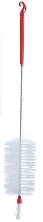 Italian made wine bottle brush. You might like this design because it has a tuft on the end that is good at getting the corners of your bottles.  Customer also like this brush for the easier entry and exit into the bottle neck, when compared to our CE35. Plastic handle is a little easier to grab as well. However some customers prefer our CE35 Wine bottle brush with the rounded bottom that will do a better job cleaning the bottom 1/4 of each bottle.  Made in Italy. 18" long x 2.25" Diameter.