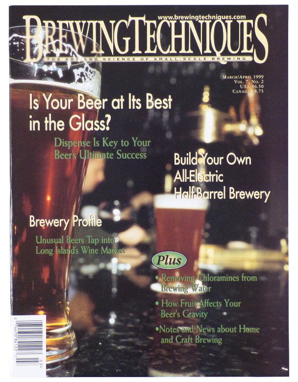 Volume 7, No. 2This issue contains:-Dispense is Key to Your Beer's Ultimate Success-Build Your Own All-Electric Half-Barrel Brewery-Removing Chloramines From Brewing Water-How Fruit Affects Your Beer's Gravity